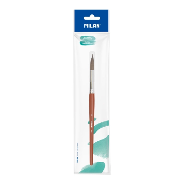 Milan 101 Pincel Escolar Redondo Numero 18 – Bolsa con Colgador – Pelo de Cabra y Sintetico – Color Madera Oscuro