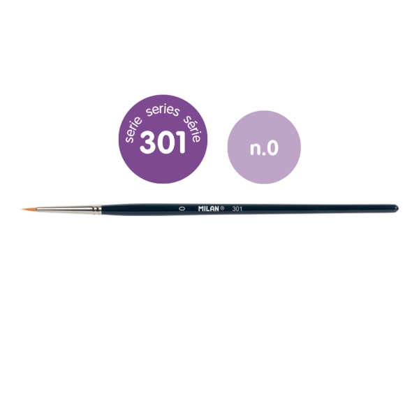 Bolsita con colgador que contiene 12 pinceles de pelo sintético de la serie 301. número 0. de la marca Milan.
