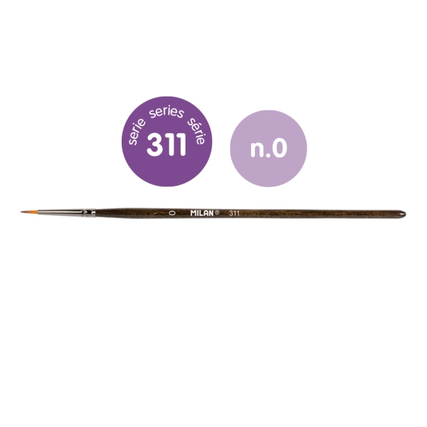 Milan 311 Pack de 12 Pinceles Redondos Numero 0 – Bolsa con Colgador – Pelo Sintetico – Color Madera Oscuro