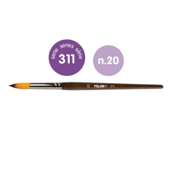 Milan 311 Pack de 3 Pinceles Redondos Numero 20 – Bolsa con Colgador – Pelo Sintetico – Color Madera Oscuro