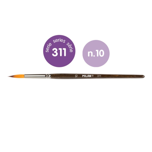 Milan 311 Pack de 6 Pinceles Redondos Numero 10 – Bolsa con Colgador – Pelo Sintetico – Color Madera Oscuro