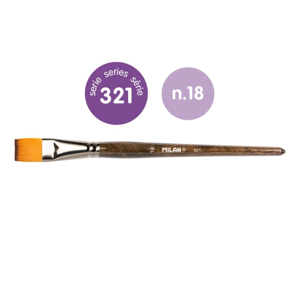 Milan 321 Pack de 3 Pinceles Planos Numero 18 – Bolsa con Colgador – Pelo Sintetico – Color Madera Oscuro