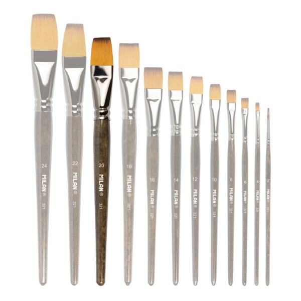Milan 321 Pack de 3 Pinceles Planos Numero 20 – Bolsa con Colgador – Pelo Sintetico – Color Madera Oscuro