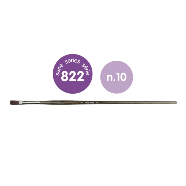 Milan 822 Pack de 6 Pinceles Planos Numero 10 – Bolsa con Colgador – Pelo Sintetico – Mango Ergonomico – Color Madera Oscuro