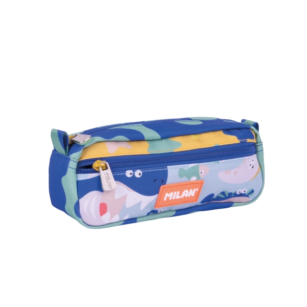 Estuche portatodo rectangular de la serie Blue Odyssey de Milan con diseño marino colorido y compartimentos para organizar útiles y accesorios.