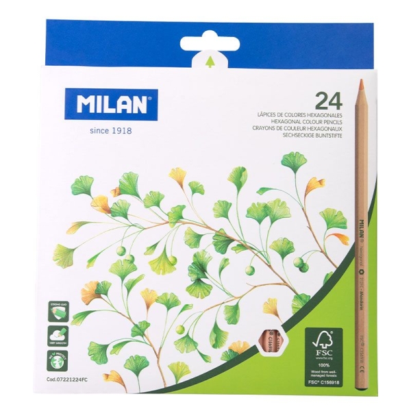 Milan Pack de 24 Lapices Hexagonales de Colores – Mina 2.9mm – Resistente a la Rotura – Madera Certificada FSC – Colores Surtidos
