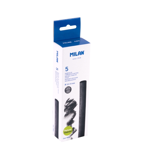 Caja con 5 barritas de carboncillo natural de la marca Milan.