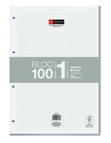 Miquel Rius Bloc1 Bloc Encolado Formato A4 – 100 Hojas de 70gr con 4 Taladros – Banda de las Hojas Gris – Base de Carton – Cuadricula 5×5