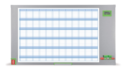 Las pizarras de planificación Performance Plus de Nobo no tienen fecha y cuentan con una superficie magnética de borrado en seco que facilita su actualización. Cuenta con una práctica pantalla que muestra la hora y la fecha. Sección de borrado en seco para notas en los laterales. Borrador magnético integrado para correcciones. Compartimento inferior para tener los rotuladores y otros accesorios a mano. Acabado de acero inoxidable con un elegante efecto de pintura. Estructura ligera de acero para facilitar la instalación. Se suministra con rotuladores de borrado en seco ProStyle de Nobo y un kit de planificación de imanes.