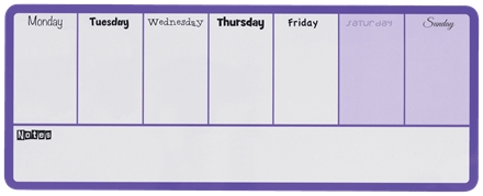 -Planificador semanal con una parte de pizarra de borrado en seco para tomar notas para cada día de la semana más una sección de notas adicionales.