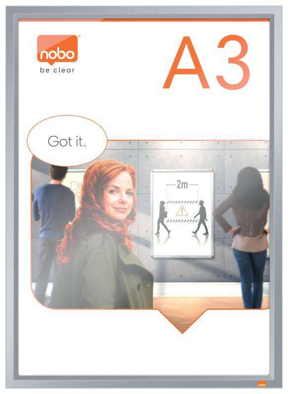Nobo Porta Posters con Marco de Clip de Aluminio A3 – Elegante Marco Anodizado – Mecanismo de Clip de Ajuste a Presion – Superficie de Exposicion A3 – Blanco