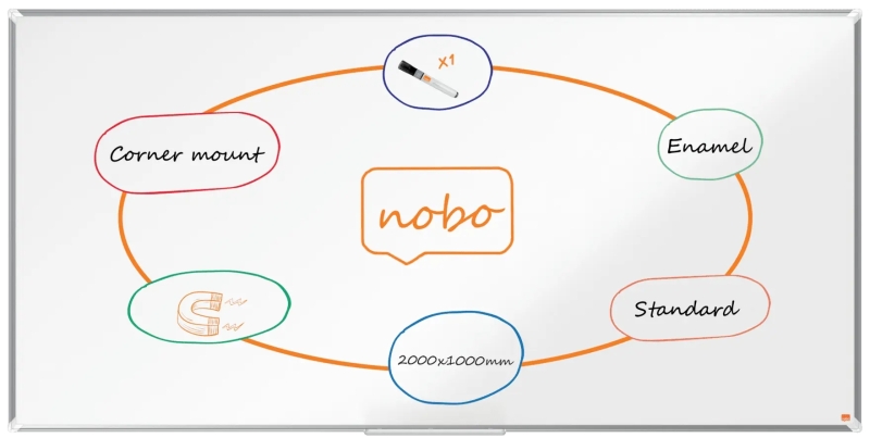 La pizarra magnética de acero vitrificado Nobo Premium Plus de 2000x1000mm es una excelente opción para aquellos que buscan una superficie de alta calidad para escribir y presentar información de manera efectiva.