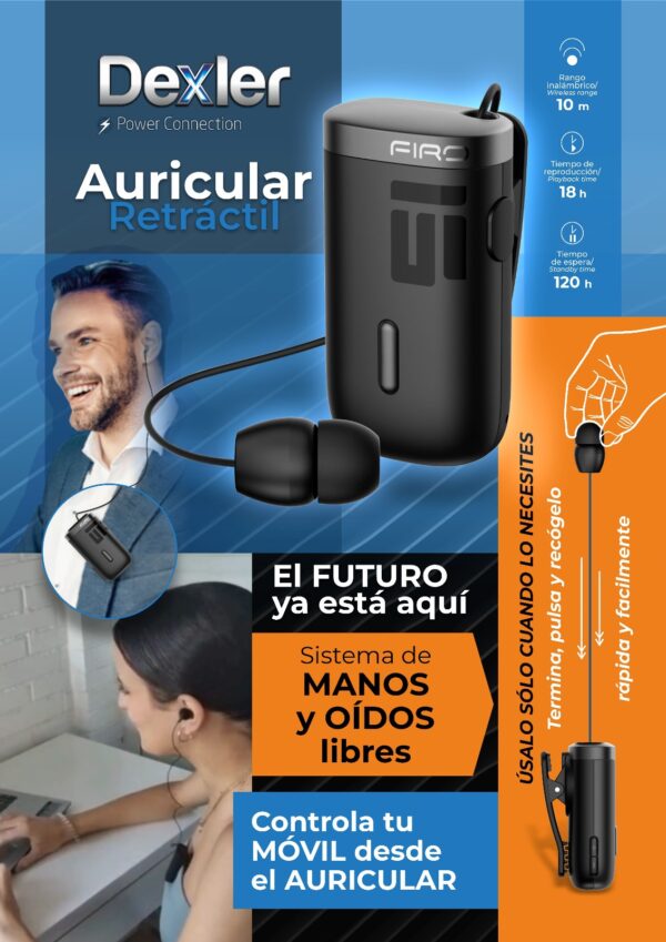 Auricular MANOS LIBRES con cable retráctil y clip de sujección