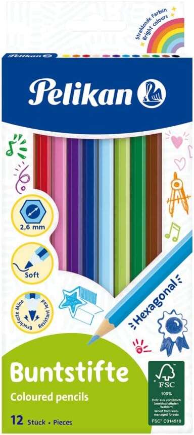 Pelikan Caja de 12 Lapices de Colores Hexagonales Lacados – Mina Antirotura – Certificacion FSC