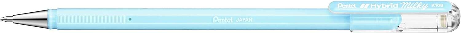Pentel Hybrid Milky Boligrafo de Bola – Punta Fina 0.8mm – Trazo 0.4mm – Tinta de Gel Opaca – Color Azul Pastel