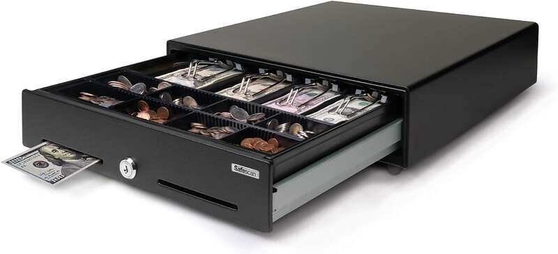 El Safescan SD-3540 es un cajón portamonedas diseñado para un uso normal en entornos comerciales. Con una capacidad de hasta 8 compartimentos para monedas y 4 para billetes, este cajón ofrece una solución segura y eficiente para el manejo de efectivo en tu negocio.