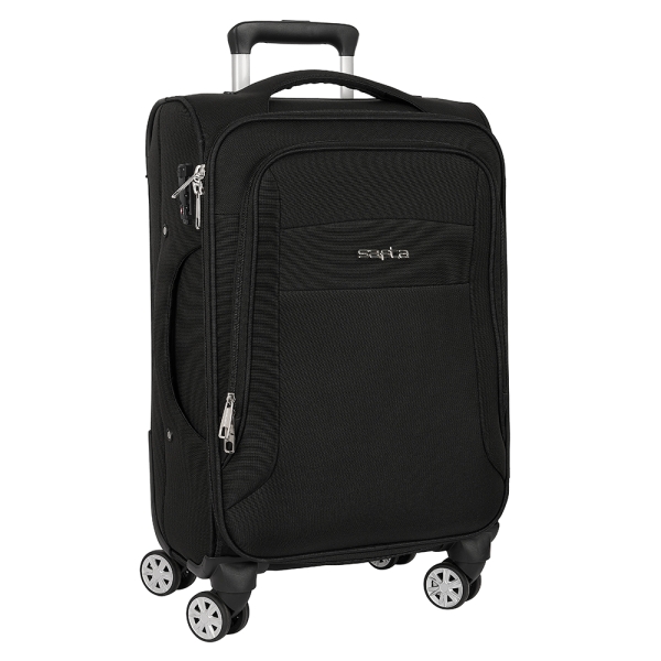 La Trolley cabina blanda Safta Business en color negro es la compañera perfecta para tus viajes de negocios o escapadas cortas. Con un diseño compacto de 20 pulgadas, combina funcionalidad y estilo para facilitarte el traslado de tus pertenencias. Su estructura ligera y resistente permite una movilidad sencilla y segura, gracias a sus ruedas dobles y giratorias de 360º que se adaptan a cualquier dirección.