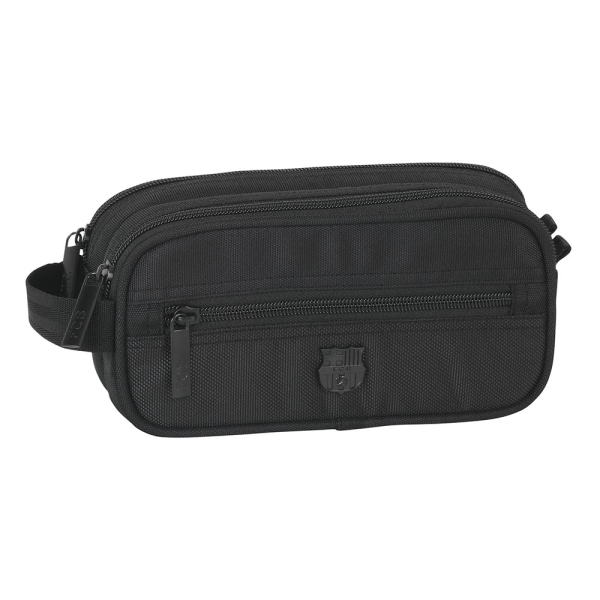 Safta F.C.Barcelona Premium Neceser Compacto de 2L – 2 Compartimentos con Cremallera – Asa Lateral – Bolsillo Frontal – 210x100x80mm – Color Negro