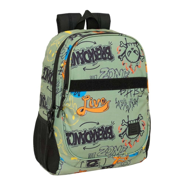 Safta Graffiti Zone Mochila Adaptable a Carro – Portabotellas – Dos Compartimentos Grandes – Tirador Doble – Hombreras Ergonomicas y Acolchadas – Asa de Mano – 23L – 320x160x440mm – Color Verde