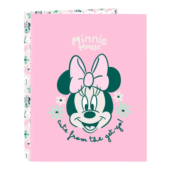 Safta Minnie Mouse Minty Carpeta con 4 Anillas 25mm – Tapas Duras Forradas – Formato Folio – Resistente y Elegante – 265x40x330mm – Color Rosa Pastel