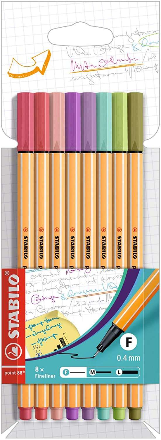 Stabilo Point 88 Pack de 8 Rotuladores de Punta Fina de Fibra – Trazo de 0.4 mm – Tinta con Base de Agua – Colores Surtidos
