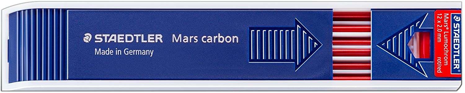 Staedtler Mars Lumochrom 204 Pack con 12 Minas de Dibujo – Mina de 3mm – Longitud de 130mm – Color Rojo