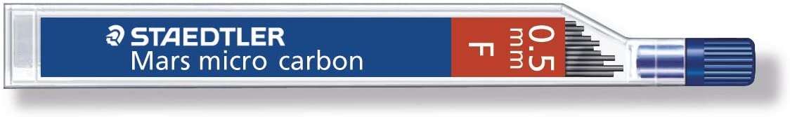 Staedtler Mars Micro Carbon 250 Tubo de 12 Minas de Grafito – Dureza F – Trazo 0.5mm – Alta Resistencia