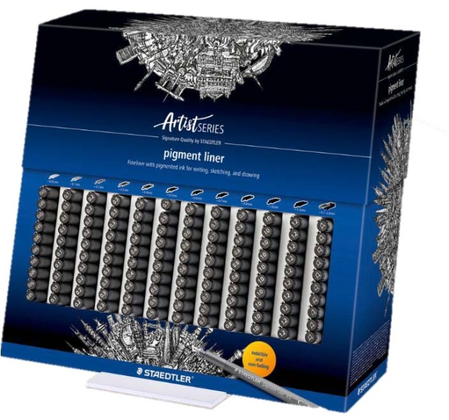 Staedtler Pigment Liner 308 Expositor con 120 Rotuladores Calibrados – Diversas Anchuras de Trazo – Secado Rapido – Color Negro