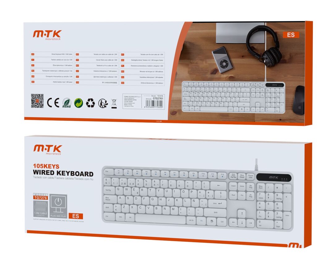 Teclado 105 teclas USB negro con cable de 1,5m. Español