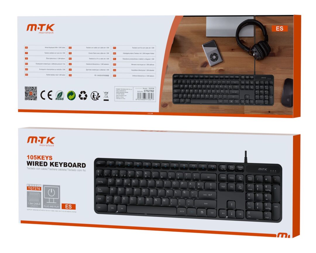Teclado 105 teclas USB blanco con cable de 1,5m. Español