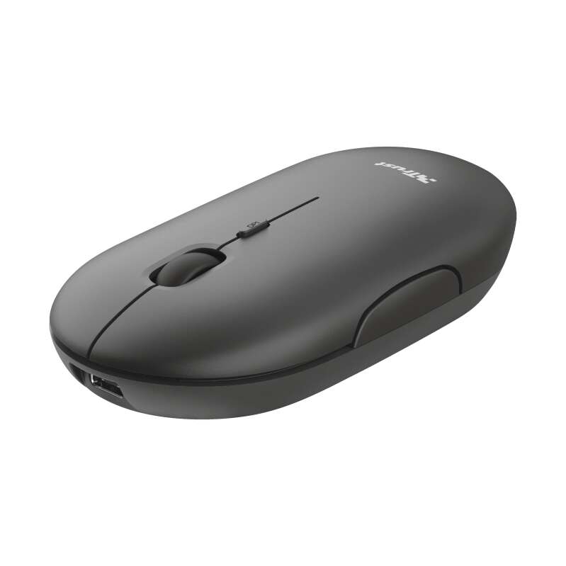 Trust Puck Raton Inalambrico Recargable 1600dpi – 3 Botones Silenciosos – Ultra Fino – Uso Ambidiestro – Color Negro