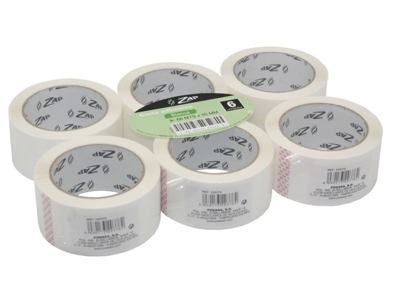 Zap Pack de 6 Precintos de Embalaje 50mm x 66m – Polipropileno 55 micras – Color Blanco